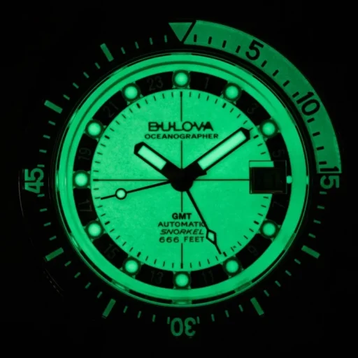 Zegarek Bulova Oceanographer Automatic GMT 98B407 to model stworzony z myślą o osobach szukających wyjątkowej funkcjonalności oraz stylowego wyglądu. Zegarek wyposażony w mechanizm GMT oraz automatyczny napęd zapewnia precyzyjne wskazania czasu w dwóch strefach czasowych. Jego odporność na wodę do 200 metrów i wytrzymały pasek silikonowy czynią go idealnym wyborem do sportów wodnych. Z kolei nowoczesny design z eleganckim, kontrastującym cyferblatem i wytrzymałą obudową sprawia, że będzie świetnym dodatkiem do codziennych oraz sportowych stylizacji.